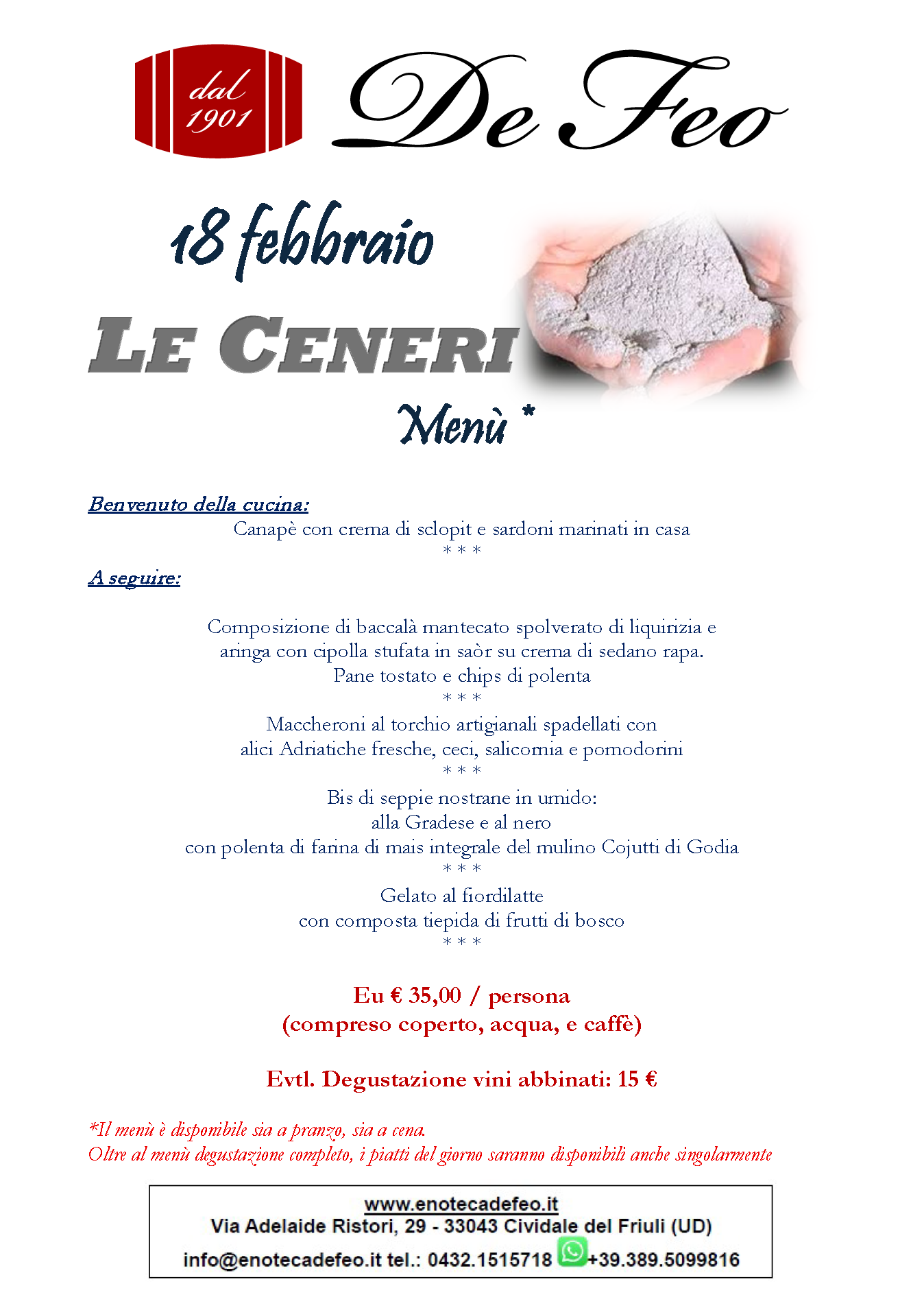 Per l’occasione abbiamo pensato un menù ad hoc che coniughi tradizione e gusti moderni.