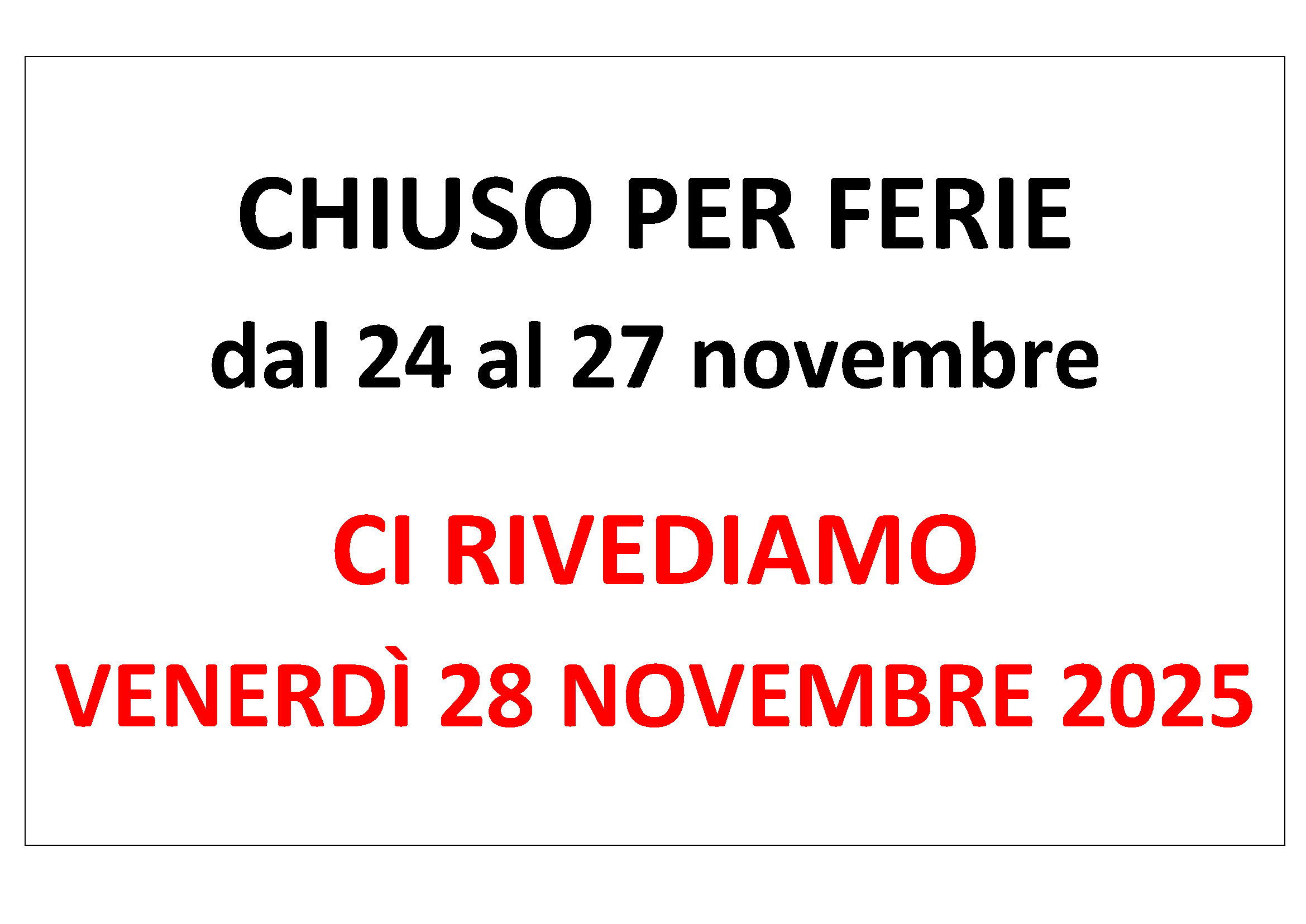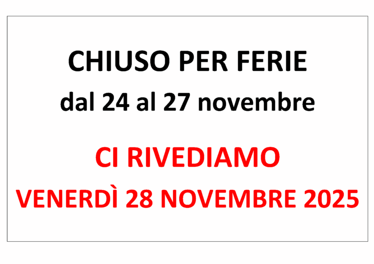Ci prendiamo qualche giornata di riposo: siamo chiusi dal 24 al 27 di novembre.